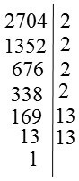 Porém, há casos em que os números poderão complicar, isso porque são grandes demais. Nesse caso, é indicado usar o processo de fatoração, decompondo por números primos. Por exemplo, veja a raiz quadrada de 2704, abaixo: